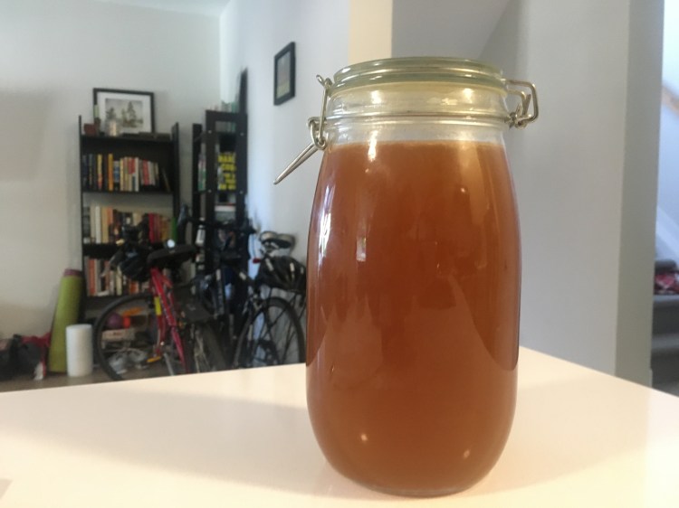 Having homemade, delicious broth at the ready is an ongoing project. I make a batch every few weeks, freeze it, and then enjoy in soups, or as savory cooking liquid in rice, gravy, casseroles and all those other ways to warm you up.